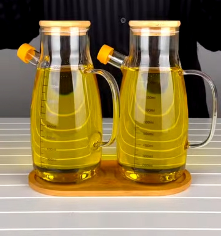 این روغن ریز کاملا وارداتی بوده و از جنس پیرکس درب آن جنس بامبو اصل بوده دارای درپوش از جنس واشر پلاستیک و درب آن از جنس بامبو می باشد.بسیار مقاوم در برابر شعله مستقیم و از نوع ضد شوک می باشد و مناسب برای استفاده به عنوان روغن ریز ،آبلیمو و سرکه و… است.حجم آن ۱۰۰۰ میلی لیتر می باشد.