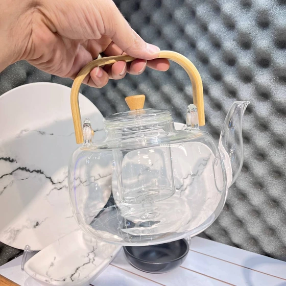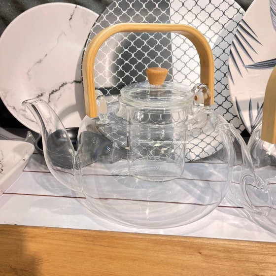 قوری پیرکس صافی دار دسته بامبو شعله مستقیم